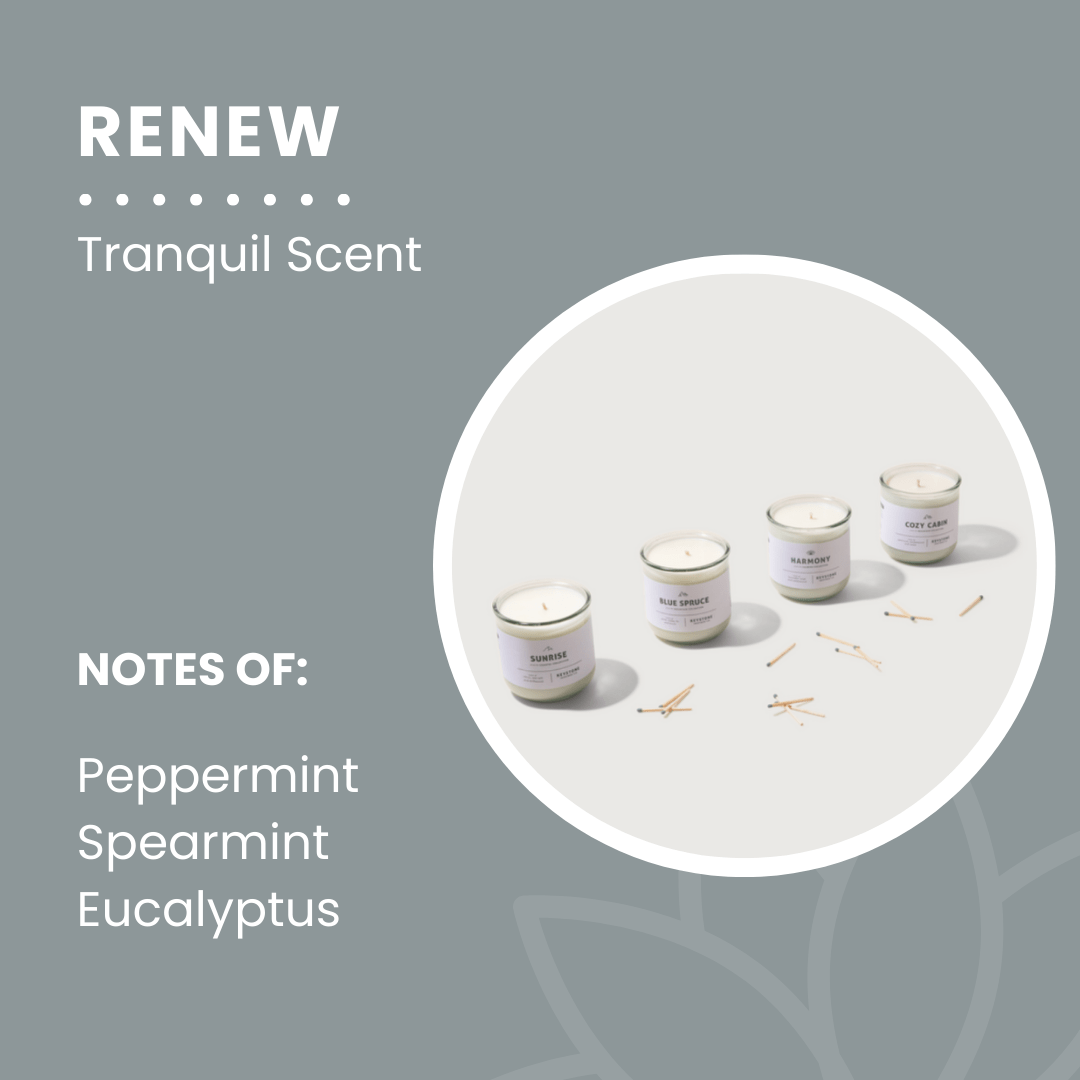 Savor the invigorating scent of Renew. This refreshing blend of peppermint, spearmint and eucalyptus helps you stay focused yet relaxed.
