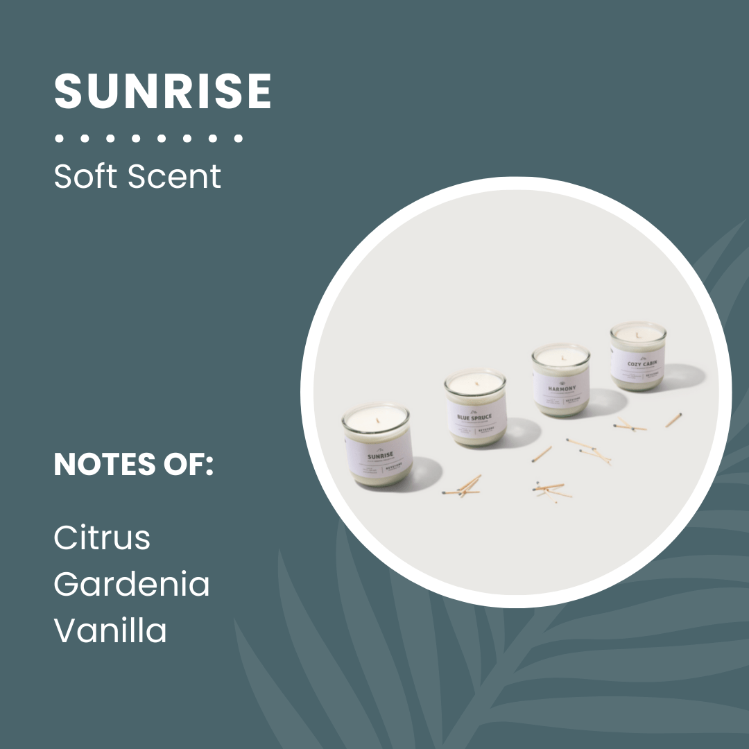 Sunrise is an energizing scented candle featuring hints of citrus, sea salt, and driftwood. A perfect combination of notes that can help energize your morning wake-up or meditation routine.