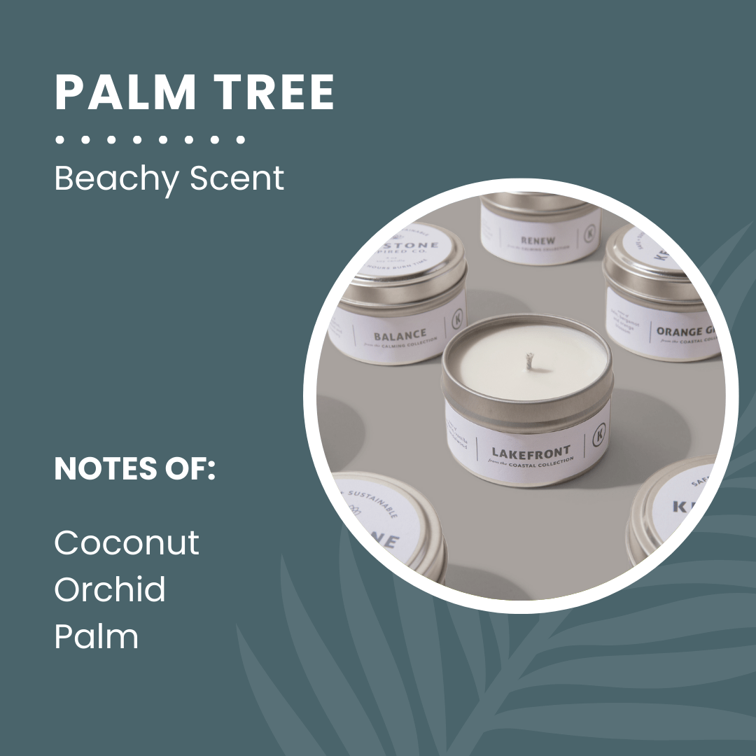 Relax, unwind and smell the fresh sea breeze with our Palm Tree candle. With notes of coconut, orchid and palm, this candle will leave you feeling like you’re on a beach with a pina colada in hand.