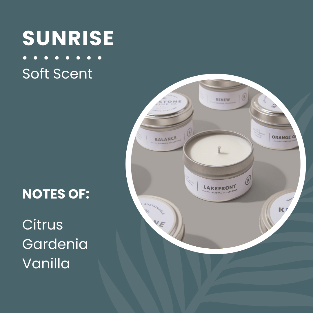 Sunrise is an energizing scented candle featuring hints of citrus, sea salt, and driftwood. A perfect combination of notes that can help energize your morning wake-up or meditation routine.