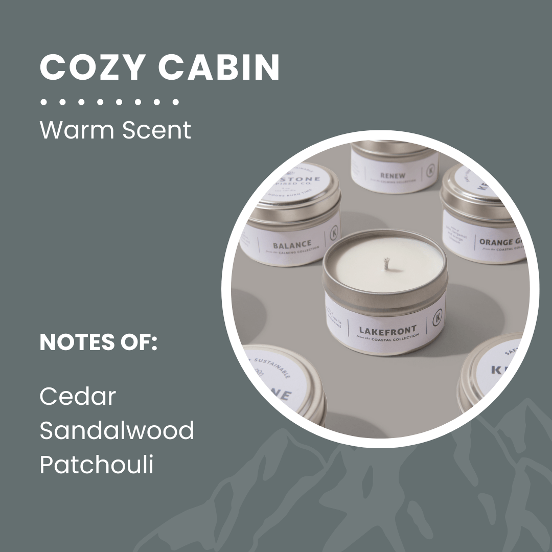 Cozy Cabin brings a cozy feeling to the atmosphere with its warm, sweet cedar scent. The notes of patchouli and sandalwood create a relaxed environment for evenings spent under the blankets with a book.