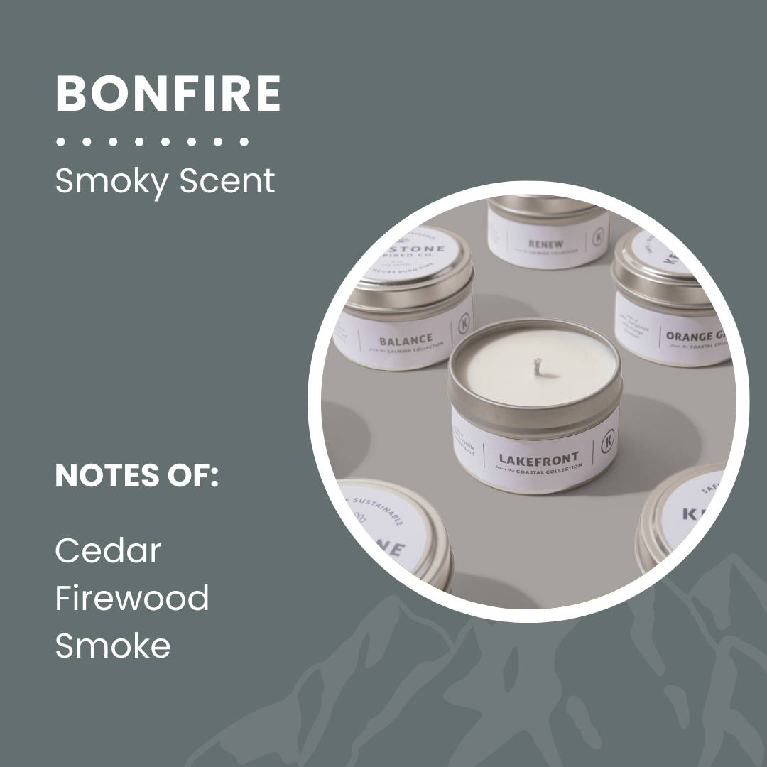 Our Bonfire scent is evocative of the scent of warm, smoky woods mixed with notes of cedar. It is reminiscent of the comfort you feel sitting by a roaring fire on a crisp fall evening wrapped in your favorite blanket beneath the stars.