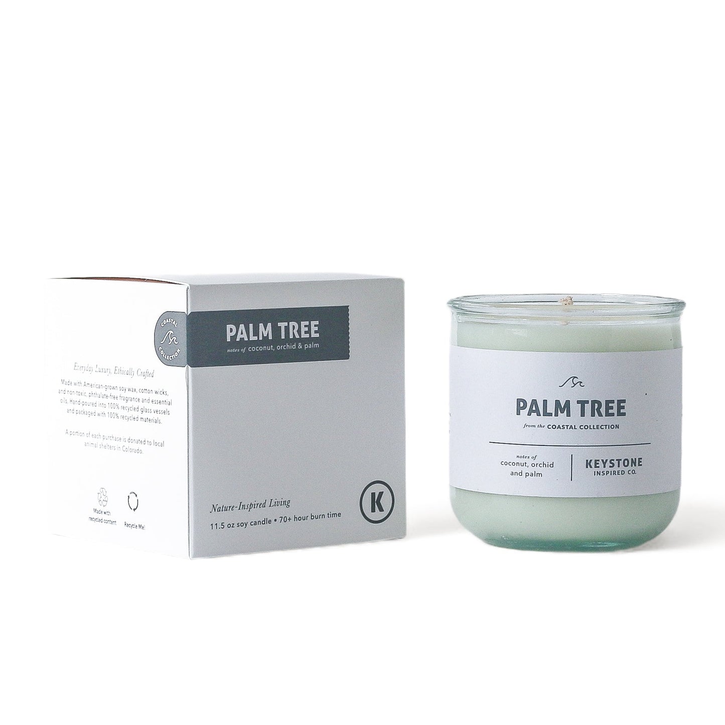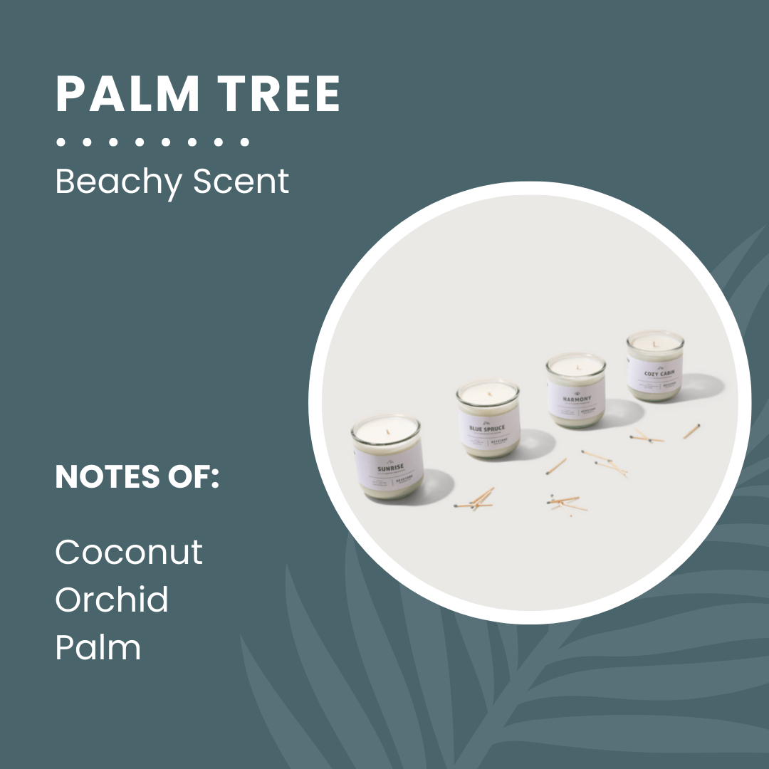 Relax, unwind and smell the fresh sea breeze with our Palm Tree candle. With notes of coconut, orchid and palm, this candle will leave you feeling like you’re on a beach with a pina colada in hand.